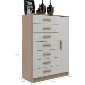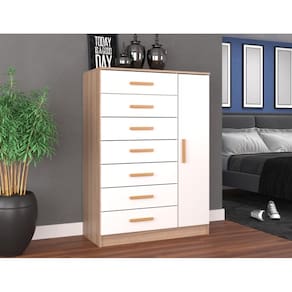 A Cômoda New Mônaco 1 Porta e 7 Gavetas é a escolha perfeita para quem busca praticidade, elegância e funcionalidade em um único móvel. Fabricada com 100% de MDP, este móvel é sinônimo de qualidade e durabilidade, garantindo que você tenha um item duradouro em sua casa.