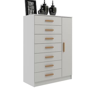 O estilo contemporâneo da linha Premium da Evidencia Móveis traz um toque especial à decoração do seu quarto. Com uma porta e sete gavetas, esta cômoda oferece amplo espaço para organizar suas roupas, calçados e objetos pessoais de forma prática e eficiente, permitindo que você mantenha tudo em ordem e à mão.