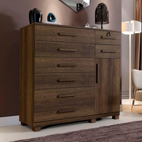 Cômoda New Vitória 1 Porta 8 Gavetas Benetil Cor:imbuia - Blush
