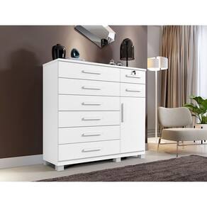 Procurando um móvel prático e funcional para o quarto? A Cômoda Vitória é excelente! Ela oferece conforto e comodidade. As oito gavetas contam com amplo espaço interno, além de ótima profundidade, deixando tudo mais organizado. Além disso, possuem corrediças telescópicas e chave em uma das gavetas. Os puxadores são madeirados, proporcionando um ótimo acabamento ao móvel. É ideal para deixar o quarto mais prático e bonito!