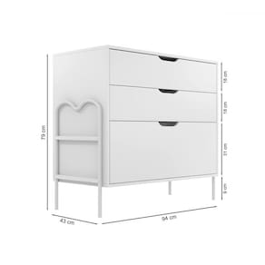 O(a) Cômoda Oasis 3 Gavetas Branco - Art Panta é produzido em Aço na escala de brilho Brilho, e possui um grau de dificuldade de montagem: Médio.