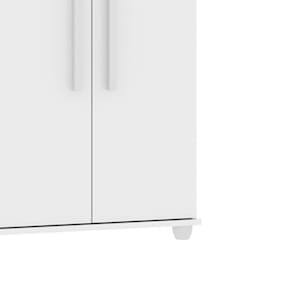 Conta com quatro amplas Gavetas, sendo uma com Fechadura, Porta Joias com Espelho Basculante e Colmeia, duas Portas e duas Prateleiras internas que podem ser utilizadas para acomodar roupas e calçados, tornando seu produto multiuso.