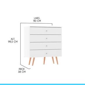 Cômoda Para Bebê Com 4 Gavetas Pés Palito Branco Menu Móveis Branco Voce ja parou pra pensar em como uma comoda pode transformar o seu ambiente? Ela e o movel perfeito para dar um toque retro e moderno ao mesmo tempo, alem de ser super versatil e combinar com todos os estilos de decoracao. Nao importa se voce e do tipo minimalista ou do tipo acumulador, a comoda tem espaco de sobra para guardar tudo o que voce precisa e manter tudo organizado. E nao e so isso, ela ainda e produzida com materiais de excelente qualidade, garantindo que dure muitos anos. Entao, nao perca mais tempo e de um upgrade na sua decoracao com uma comoda retro e funcional. Seu espaco vai ficar mais aconchegante e bonito, voce merece! O melhor em moveis no design atual aliando qualidade e otimos precos, so na Menu Moveis! Caracteristicas: Produzida em MDP de 12 e 15 mm Acabamento UV na cor Branco 04 Gavetas com Corredicas Metalicas Puxadores Ponto em ABS na cor Cinza Pes Retro em Madeira com 22 cm