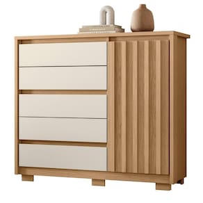 Procurando por uma solução de armazenamento inteligente e funcional para o seu quarto? Conheça a Cômoda Para Quarto 1 Porta 125cm Ripada Duetto Off/Freijó, da Albatroz. Com um design moderno e espaçoso, essa cômoda é perfeita para qualquer quarto.