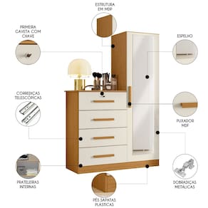 A Cômoda Para Quarto 109cm 1 Porta Belize Plus Off/Cinamomo, da Mpozenato é a escolha ideal para quem busca organização, segurança e sofisticação.