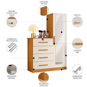 A Cômoda Para Quarto 109cm 1 Porta Belize Plus Off/Cinamomo, da Mpozenato é a escolha ideal para quem busca organização, e sofisticação.