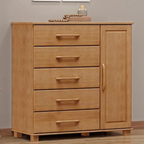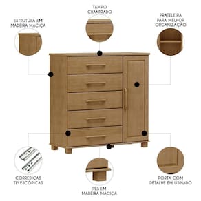 A Cômoda Para Quarto é produzida 100% em madeira maciça. Conta com tampo chanfrado de 25mm que traz um toque acolhedor e sofisticado para qualquer ambiente.