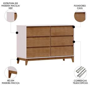 Cômoda Para Quarto 125cm 6 Gavetas Solvi Off White/Freijó F07