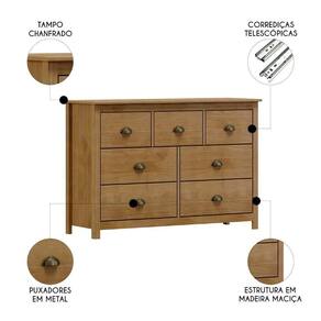 Cômoda Para Quarto 125cm 7 Gavetas Lázio Freijó F07