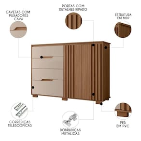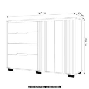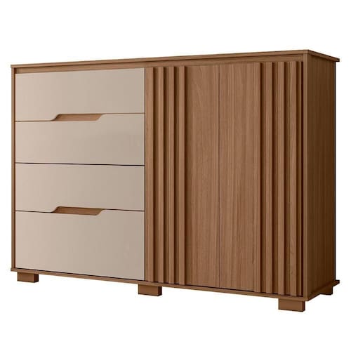 Essa Cômoda moderna, prática e cheia de estilo, com um design que mistura funcionalidade e charme, traz um toque elegante com detalhes ripados nas portas e acabamento impecável, a peça que vai transformar seu Quarto.