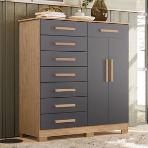 Com design moderno e amplo espaço, essa Cômoda Com 8 Gavetas espaçosas, excelentes para dispor roupas, como também as peças de cama, mesa e banho. Além disso, a parte interna da porta, pode ser aproveitada como sapateira e, ainda, serve para dispor algumas peças de cabide, já que possui cabideiro de madeira. Já os pés são excelentes aliados contra a umidade, bem como facilitam a limpeza e garantem estabilidade ao produto. Para completar a Cômoda Sapateira, você pode dar aquele toque de charme ao dispor alguns itens decorativos sobre o tampo e deixar o Quarto elegante e aconchegante.