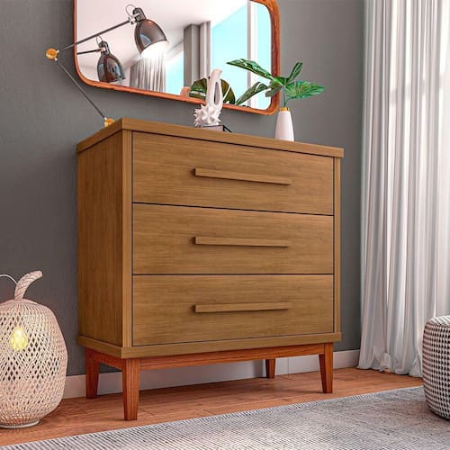 Cômoda Para Quarto 3 Gavetas Charlotte Amêndoa - Cor: Marrom