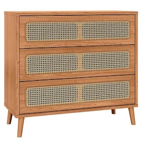Cômoda Para Quarto 3 Gavetas Com Palha 105cm Pés Retrô Arnoni D03 Freijó - Lyam Decor