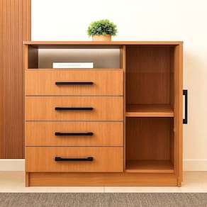 Com quatro gavetas espaçosas e uma porta, a Cômoda Sapateira 4 Gavetas 1 Porta e Nicho oferece o espaço perfeito para você armazenar suas roupas, acessórios e sapatos de forma organizada e prática. Além de ser uma excelente opção para manter seu ambiente arrumado, ela também pode funcionar como um multiuso ideal, atendendo às suas necessidades de armazenamento de forma versátil. Produto Montado: Sim Acabamento da Gaveta: Finish Foil Acabamento da Porta: Finish Foil Acabamento da Prateleira: Finish Foil Ambiente Principal: Quarto codigo_ean: 6460547374448 Complexidade da Montagem: Média: pode ser montado por mais de uma pessoa e/ou necessite de maior conhecimento para montagem Cor: Freijó Cor do Produto: Freijó Cor do Puxador: Bronze Cor Interna: Madeirado Escala de Brilho: Semi-Fosco Escala de Brilho da Gaveta: Semi-Fosco Escala de Brilho da Porta: Semi-Fosco Escala de Brilho da Prateleira: Semi-Fosco Gaveta com Chave: Não Itens Inclusos: 1 Cômoda e Kit Ferragens Linha ou Coleção: Menezes Manual de Montagem e Instalação: https://product-hub-prd.madeiramadeira.com.br/843512714/documents/acb7548e-5acb-4792-8e01-57df3f23a40552553924612417315021703623.pdf Marca: Móveis Menezes Material da Gaveta: MDP Material da Porta: MDP Material da Prateleira: MDP Material do Fundo: HDF Material do Puxador da Gaveta: ABS Material do Puxador da Porta: ABS Material Principal: MDP Necessita Montagem: Sim Origem do Produto: Nacional Peso: 30 kg Peso Máximo por Gaveta: 5 kg Peso Máximo por Prateleira: 5 kg Porta Janelada: Não Possui Espelho: Não Possui Nichos: 01 Possui Pés: Não Possui Portas: Sim Possui Prateleiras: Sim Quantidade de Gavetas: 04 Gavetas Quantidade de Prateleiras: 01 Prateleira Recomendações de Uso, Manutenção e Limpeza: Não Molhar Sapatas Niveladoras: Não Sistema de Montagem: Parafusos Suporta Até (kg): 30 kg Tipo de Corrediça da Gaveta: Metálica Simples Tipo de Dobradiça/Corrediça da Porta: Metálica Tipo de Porta: Bater Tipo de Puxador da Gaveta: Externo Tipo de Puxador da Porta: Externo Marca: Não Informado