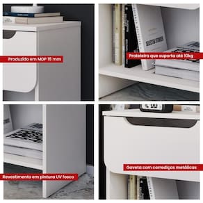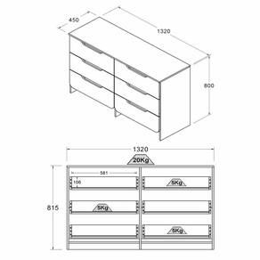 Peso Suportado: 20Kg no tampo e 5kg em cada gaveta