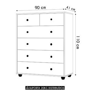 A Cômoda 6 Gavetas, sendo todas com corrediças telescópicas, ela oferece organização eficiente para roupas e objetos, ajudando a otimizar o espaço de qualquer ambiente. Seu design moderno e arrojado traz um toque de sofisticação ao ambiente. As gavetas possuem sistema de trava nas unidades maiores, garantindo maior , durabilidade e um deslizar suave. A estrutura em MDP de 15mm assegura robustez, enquanto os pés ABS conferem estabilidade e resistência ao móvel. Combinando funcionalidade e estilo, esta Cômoda é uma excelente escolha para quem busca praticidade sem abrir mão de um visual contemporâneo. Ideal para quem valoriza organização e quer aproveitar ao máximo o espaço disponível no Quarto.