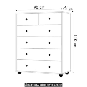 A Cômoda 6 Gavetas, sendo todas com corrediças telescópicas, ela oferece organização eficiente para roupas e objetos, ajudando a otimizar o espaço de qualquer ambiente. Seu design moderno e arrojado traz um toque de sofisticação ao ambiente. As gavetas possuem sistema de trava nas unidades maiores, garantindo maior , durabilidade e um deslizar suave. A estrutura em MDP de 15mm assegura robustez, enquanto os pés ABS conferem estabilidade e resistência ao móvel. Combinando funcionalidade e estilo, esta Cômoda é uma excelente escolha para quem busca praticidade sem abrir mão de um visual contemporâneo. Ideal para quem valoriza organização e quer aproveitar ao máximo o espaço disponível no Quarto.