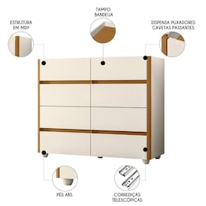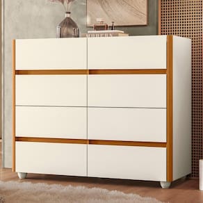 MDP/MDFEsta Cômoda Para Quarto 8 Gavetas 120cm Lynd A02 Off/Cinamomo, da Mpozenato, é a solução perfeita para quem busca organização e estilo para o Quarto.