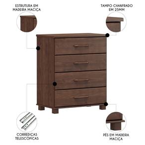 As quatro gavetas, com puxadores em madeira e equipadas com corrediças telescópicas, deslizam suavemente, oferecendo resistência e conforto no uso. O design dos puxadores realça a beleza natural da Cômoda de Casal, deixando-a ainda mais elegante.