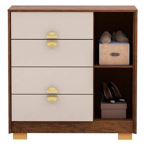 Os pés opcionais na montagem e a moldura lateral proporcionam robustez e um acabamento refinado, destacando ainda mais a beleza do móvel. Esses detalhes de design tornam a Cômoda 4 Gavetas uma peça versátil que se adapta às suas necessidades, agregando valor ao seu ambiente.