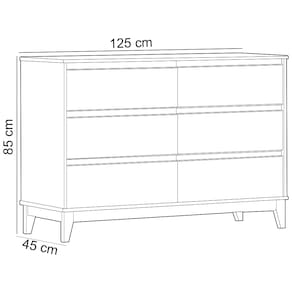 Cada detalhe encanta, desde as gavetas espaçosas para uma organização inteligente para roupas íntimas, acessórios ou itens pessoais, aos pés retrô, que trazem personalidade e equilíbrio ao design moderno. Além disso, a estrutura em MDF de alta resistência garante durabilidade e acabamento impecável, enquanto as linhas limpas e funcionais adaptam-se a quartos modernos, clássicos ou ecléticos. Seja para complementar closets, quartos de casal que precisam de armazenamento extra ou ambientes que buscam um mix de modernidade e nostalgia, a cômoda Cintra é a escolha certa.