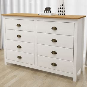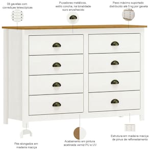 A Cômoda Mazzaro, da Lyam Decor, leva para seu quarto aquele charme atemporal do estilo americano, com a praticidade que as 8 gavetas espaçosas podem oferecer.