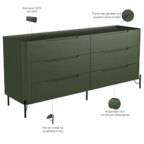 Combinando design orgânico e industrial, essa cômoda moderna traz linhas curvas e pés metálicos, criando um visual único e elegante. Já os puxadores cava garantem um visual clean e contemporâneo, ideal para quartos e closets. Para completar, essa cômoda conta com estrutura robusta, uma vez que é fabricada em 100% MDF, de modo a oferecer durabilidade e resistência, mantendo o charme do seu ambiente por muito mais tempo, enquanto as amplas gavetas dispõem de espaço dinâmico para manter tudo no lugar.
