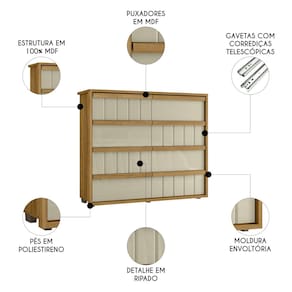 Cômoda Para Quarto Com 8 Gavetas 136cm Avila Opala/Cumaru Z10 - Mpozenato
