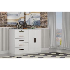 Cômoda para Quarto com Sapateira 5 Gavetas - Space-Branco - Móveis Novo Horizonte - Bronze