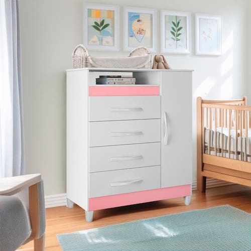 Detalhes nas Extremidades em Quatro Opções de Cores (Branco, Titanium, Rosa e Azul): Personalize o móvel conforme seu estilo e decoração, escolhendo entre as quatro cores disponíveis para os detalhes nas extremidades, que adicionam um toque especial e único à peça.