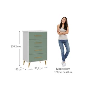 A cômoda infantil Magia une elegância, praticidade e funcionalidade para o quarto do seu pequeno. Confeccionada em MDP de alta qualidade e com acabamento em pintura UV, oferece durabilidade e um visual moderno que encanta. Seu design faz dela o móvel perfeito para transformar o espaço em um ambiente acolhedor e cheio de estilo. Produto Montado: Sim Acabamento da Gaveta: Pintura UV Altura dos Pés: 18 cm Altura Máxima dos Pés: 18.0000 Ambiente Principal: Quarto Infantil codigo_ean: 7900288168849 Complexidade da Montagem: Média: pode ser montado por mais de uma pessoa e/ou necessite de maior conhecimento para montagem Cor: Branco/Verde Cor do Produto: Branco/Verde Escala de Brilho: Fosco Escala de Brilho da Gaveta: Fosco Gaveta com Chave: Não Itens Inclusos: 1 Cômoda, Kit Ferragens e Manual de Montagem Linha ou Coleção: Magia Manual de Montagem e Instalação: https://product-hub-prd.madeiramadeira.com.br/399077450/documents/3cf885f3-facd-44d5-80a6-107c6bcc28bc2939521234117476849262682.pdf Marca: Espresso Móveis Material da Gaveta: MDP Material do Fundo: MDF Material do Puxador da Gaveta: MDP Material dos Pés: Plástico Material Principal: MDP modular: Não Necessita Montagem: Sim Origem do Produto: Nacional Pés Reguláveis: Não Peso: 29,9 kg Peso Máximo por Gaveta: 5 kg Possui Espelho: Não Possui Nichos: Não Possui Pés: 04 Possui Portas: Não Possui Prateleiras: Não Possui Rodízio: Não Quantidade de Gavetas: 04 Gavetas Recomendações de Uso, Manutenção e Limpeza: pano levemente úmido Sapatas Niveladoras: Não Sistema de Montagem: parafusos, cavilhas e cantoneiras Suporta Até (kg): 20 kg Tipo de Cômoda: Infantil Tipo de Corrediça da Gaveta: Metálica Telescópica Tipo de Puxador da Gaveta: Externo