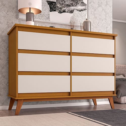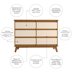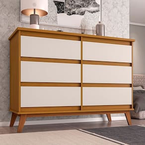 Cômoda para Quarto Londres 6 Gavetas - Nature/off White - Marrom