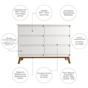 Cômoda para Quarto Londres com 6 Gavetas - Branco