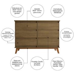 IMAGENS MERAMENTE ILUSTRATIVAS, PODENDO HAVER UMA PEQUENA VARIAÇÃO DE COR DEPENDENDO DE CADA TELA OU MONITOR.CÃmoda para Quarto ReforÃada Londres com 6 Gavetas - Canela