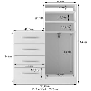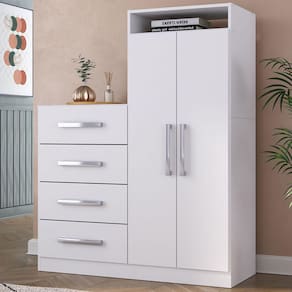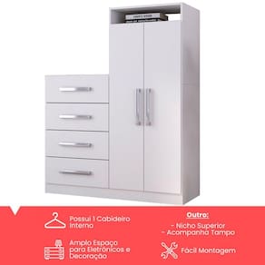 O(a) Cômoda Paris 2 Portas 4 Gavetas Branco - Panorama Móveis é produzido em MDF e MDP na escala de brilho Semi-Brilho, e possui um grau de dificuldade de montagem: Médio.