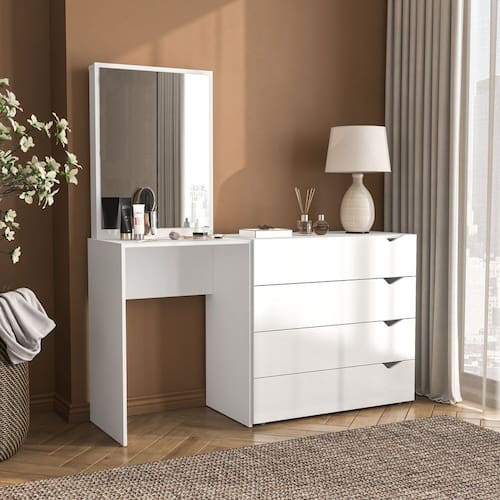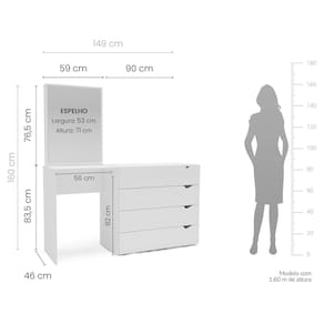 A Cômoda Penteadeira com Espelho Porto da Politorno Móveis é a escolha perfeita para quem busca elegância, funcionalidade e otimização de espaço em um único móvel. Com design moderno e sofisticado na cor branca, ela combina a praticidade de uma cômoda com a utilidade de uma penteadeira, ideal para quartos que exigem versatilidade sem abrir mão do estilo. Com 149 cm de largura, 160 cm de altura e 46 cm de profundidade, oferece amplo espaço com 4 gavetas funcionais, um tampo generoso para itens de uso diário e um espelho grande que valoriza ainda mais o ambiente. Fabricada em MDP com acabamento em pintura UV semi fosco, é resistente, durável e fácil de limpar, trazendo beleza e praticidade para sua rotina com o padrão de qualidade da Linha Porto da Politorno. Produto Montado: Sim Acabamento da Gaveta: Pintura UV Altura do Espelho: 71 cm Ambiente Principal: Quarto codigo_ean: 7900288187680 Complexidade da Montagem: Média: pode ser montado por mais de uma pessoa e/ou necessite de maior conhecimento para montagem Cor: Branco Cor do Produto: Branco Cor Interna: Branco Escala de Brilho: Semi-Fosco Escala de Brilho da Gaveta: Semi-Fosco Espessura do Espelho: 3 mm Fita Integrada: Sim Formato do Espelho: Retangular Gaveta com Chave: Não Itens Inclusos: 1 Cômoda, Kit de Ferragens, Manual de Montagem e Termo de Garantia Largura do Espelho: 53 cm Linha ou Coleção: Porto Manual de Montagem e Instalação: https://product-hub-prd.madeiramadeira.com.br/931523961/documents/a7d01340-1fad-474c-94ce-bba8436b61ae3049147622417515664903886.pdf Marca: Politorno Material da Gaveta: MDF/MDP Material do Fundo: MDP Material Principal: MDP Necessita Montagem: Sim Origem do Produto: Nacional Peso: 32 kg Peso Máximo por Gaveta: 5 kg Possui Espelho: Sim Possui Nichos: Não Possui Pés: Não Possui Portas: Não Possui Prateleiras: Não Quantidade de Espelho: 01 Quantidade de Gavetas: 04 Gavetas Recomendações de Uso, Manutenção e Limpeza: Utilize um pano macio umedecido com água e sabão neutro, seguido de pano seco. Não utilize produtos químicos ou abrasivos para limpeza, pois estes danificam o revestimento do móvel. Sapatas Niveladoras: Não Sistema de Montagem: Cavilha, Parafuso, Minifix e prego. Suporta Até (kg): 15 kg Tipo de Cômoda: Adulto Tipo de Corrediça da Gaveta: Metálica Telescópica Tipo de Fixação do Espelho: Fita Dupla Face Tipo de Puxador da Gaveta: Embutido Marca: Não Informado
