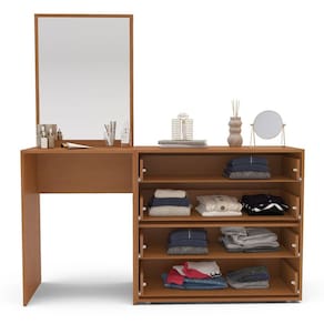 A Cômoda Penteadeira com Espelho Porto da Politorno Móveis é a escolha perfeita para quem busca elegância, funcionalidade e otimização de espaço em um único móvel. Com design moderno e sofisticado na cor azul e freijó, ela combina a praticidade de uma cômoda com a utilidade de uma penteadeira, ideal para quartos que exigem versatilidade sem abrir mão do estilo. Com 149 cm de largura, 160 cm de altura e 46 cm de profundidade, oferece amplo espaço com 4 gavetas funcionais, um tampo generoso para itens de uso diário e um espelho grande que valoriza ainda mais o ambiente. Fabricada em MDP com acabamento em pintura UV semi fosco, é resistente, durável e fácil de limpar, trazendo beleza e praticidade para sua rotina com o padrão de qualidade da Linha Porto da Politorno. Produto Montado: Sim Acabamento da Gaveta: Pintura UV Altura do Espelho: 71 cm Ambiente Principal: Quarto codigo_ean: 7900288187666 Complexidade da Montagem: Média: pode ser montado por mais de uma pessoa e/ou necessite de maior conhecimento para montagem Cor: Freijó/Azul Cor do Produto: Freijó/Azul Cor Interna: Freijó Escala de Brilho: Semi-Fosco Espessura do Espelho: 3 mm Fita Integrada: Sim Formato do Espelho: Retangular Gaveta com Chave: Não Itens Inclusos: 1 Cômoda, Kit Ferragem, Manual de Montagem e Termo de Garantia Largura do Espelho: 53 cm Linha ou Coleção: Porto Manual de Montagem e Instalação: https://product-hub-prd.madeiramadeira.com.br/767998352/documents/7b94134d-0643-4dad-b315-2a2624473c053049146622417515664632978.pdf Marca: Politorno Material da Gaveta: MDF/MDP Material do Fundo: MDP Material Principal: MDP Necessita Montagem: Sim Origem do Produto: Nacional Peso: 32 kg Peso Máximo por Gaveta: 5 kg Possui Espelho: Sim Possui Nichos: Não Possui Pés: Não Possui Portas: Não Possui Prateleiras: Não Quantidade de Espelho: 01 Quantidade de Gavetas: 04 Gavetas Recomendações de Uso, Manutenção e Limpeza: Utilize um pano macio umedecido com água e sabão neutro, seguido de pano seco. Não utilize produtos químicos ou abrasivos para limpeza, pois estes danificam o revestimento do móvel. Sapatas Niveladoras: Não Sistema de Montagem: Cavilha, Parafuso, Minifix e prego. Suporta Até (kg): 15 kg Tipo de Cômoda: Adulto Tipo de Corrediça da Gaveta: Metálica Telescópica Tipo de Fixação do Espelho: Fita Dupla Face Tipo de Puxador da Gaveta: Embutido Marca: Não Informado
