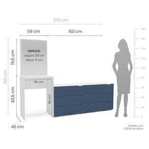 A Cômoda 6 Gavetas Porto da Politorno Móveis é a união perfeita entre design elegante, amplo espaço e funcionalidade para o dia a dia. Com visual moderno e acabamento em pintura UV azul e branco semi fosco, essa peça da Linha Porto é ideal para quem busca sofisticação e praticidade no quarto. Suas medidas generosas — 209 cm de largura, 160 cm de altura e 46 cm de profundidade — garantem excelente capacidade de armazenamento, com 6 gavetas espaçosas que organizam roupas, acessórios e objetos pessoais com facilidade. Produzida em MDP de alta qualidade, oferece durabilidade, resistência e um acabamento fácil de limpar, tornando-se uma solução completa e estilosa para manter seu ambiente sempre bonito e organizado. Produto Montado: Sim Acabamento da Gaveta: Pintura UV Altura do Espelho: 71 cm Ambiente Principal: Quarto codigo_ean: 7900288189288 Complexidade da Montagem: Média: pode ser montado por mais de uma pessoa e/ou necessite de maior conhecimento para montagem Cor: Azul/Branco Cor do Produto: Azul/Branco Cor Interna: Branco Escala de Brilho: Semi-Fosco Escala de Brilho da Gaveta: Semi-Fosco Espessura do Espelho: 3 mm Fita Integrada: Sim Formato do Espelho: Retangular Gaveta com Chave: Não Itens Inclusos: 1 Cômoda, Kit Ferragens, Manual de Montagem e Termo de Garantia Largura do Espelho: 53 cm Linha ou Coleção: Porto Manual de Montagem e Instalação: https://product-hub-prd.madeiramadeira.com.br/525714871/documents/5b9df192-ed89-4364-9e93-c0f410c88b6c3049802622417515692996436.pdf Marca: Politorno Material da Gaveta: MDP Material do Fundo: MDP Material Principal: MDP Necessita Montagem: Sim Origem do Produto: Nacional Peso: 40 kg Peso Máximo por Gaveta: 5 kg Possui Espelho: Sim Possui Nichos: Não Possui Pés: Não Possui Portas: Não Possui Prateleiras: Não Quantidade de Espelho: 01 Quantidade de Gavetas: 06 Gavetas Recomendações de Uso, Manutenção e Limpeza: Utilize um pano macio umedecido com água e sabão neutro, seguido de pano seco. Não utilize produtos químicos ou abrasivos para limpeza, pois estes danificam o revestimento do móvel. Sapatas Niveladoras: Não Sistema de Montagem: Cavilha, Parafuso, Minifix e prego. Suporta Até (kg): 30 kg Tipo de Cômoda: Adulto Tipo de Corrediça da Gaveta: Metálica Telescópica Tipo de Fixação do Espelho: Fita Dupla Face Tipo de Puxador da Gaveta: Embutido Marca: Não Informado