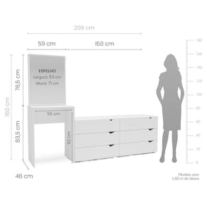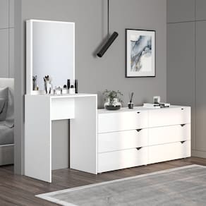 Cômoda Penteadeira 6 Gavetas com Espelho Porto Branco