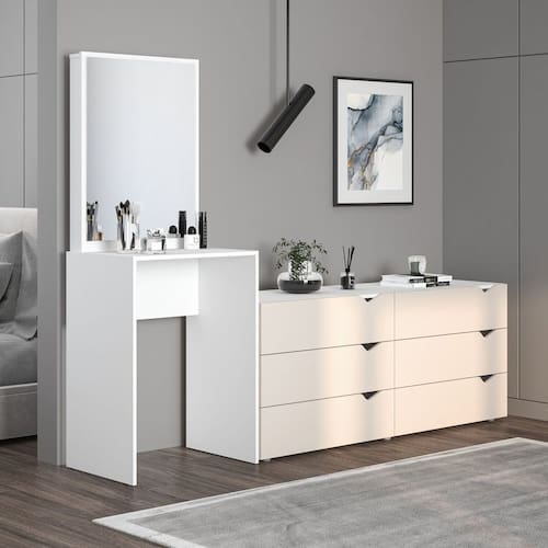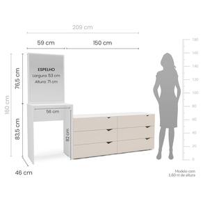 A Cômoda 6 Gavetas Porto da Politorno Móveis é a união perfeita entre design elegante, amplo espaço e funcionalidade para o dia a dia. Com visual moderno e acabamento em pintura UV creme e branco semi fosco, essa peça da Linha Porto é ideal para quem busca sofisticação e praticidade no quarto. Suas medidas generosas — 209 cm de largura, 160 cm de altura e 46 cm de profundidade — garantem excelente capacidade de armazenamento, com 6 gavetas espaçosas que organizam roupas, acessórios e objetos pessoais com facilidade. Produzida em MDP de alta qualidade, oferece durabilidade, resistência e um acabamento fácil de limpar, tornando-se uma solução completa e estilosa para manter seu ambiente sempre bonito e organizado. Produto Montado: Sim Acabamento da Gaveta: Pintura UV Altura do Espelho: 71 cm Ambiente Principal: Quarto codigo_ean: 7900288189257 Complexidade da Montagem: Média: pode ser montado por mais de uma pessoa e/ou necessite de maior conhecimento para montagem Cor: Creme/Branco Cor do Produto: Creme/Branco Cor Interna: Branco Escala de Brilho: Semi-Fosco Espessura do Espelho: 3 mm Fita Integrada: Sim Formato do Espelho: Retangular Gaveta com Chave: Não Itens Inclusos: 1 Cômoda, Kit Ferragens, Manual de Montagem e Termo de Garantia Largura do Espelho: 53 cm Linha ou Coleção: Porto Manual de Montagem e Instalação: https://product-hub-prd.madeiramadeira.com.br/294751240/documents/ff5b56fb-f4f2-4f97-b945-d120633e7f7d3049835622417515694602107.pdf Marca: Politorno Material da Gaveta: MDP Material do Fundo: MDP Material Principal: MDP Necessita Montagem: Sim Origem do Produto: Nacional Peso: 40 kg Peso Máximo por Gaveta: 5 kg Possui Espelho: Sim Possui Nichos: Não Possui Pés: Não Possui Portas: Não Possui Prateleiras: Não Quantidade de Espelho: 01 Quantidade de Gavetas: 06 Gavetas Recomendações de Uso, Manutenção e Limpeza: Utilize um pano macio umedecido com água e sabão neutro, seguido de pano seco. Não utilize produtos químicos ou abrasivos para limpeza, pois estes danificam o revestimento do móvel. Sapatas Niveladoras: Não Sistema de Montagem: Cavilha, Parafuso, Minifix e prego. Suporta Até (kg): 30 kg Tipo de Corrediça da Gaveta: Metálica Telescópica Tipo de Fixação do Espelho: Fita Dupla Face Tipo de Puxador da Gaveta: Embutido Marca: Não Informado