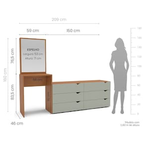 A Cômoda 6 Gavetas Porto da Politorno Móveis é a união perfeita entre design elegante, amplo espaço e funcionalidade para o dia a dia. Com visual moderno e acabamento em pintura UV verde e freijó semi fosco, essa peça da Linha Porto é ideal para quem busca sofisticação e praticidade no quarto. Suas medidas generosas — 209 cm de largura, 160 cm de altura e 46 cm de profundidade — garantem excelente capacidade de armazenamento, com 6 gavetas espaçosas que organizam roupas, acessórios e objetos pessoais com facilidade. Produzida em MDP de alta qualidade, oferece durabilidade, resistência e um acabamento fácil de limpar, tornando-se uma solução completa e estilosa para manter seu ambiente sempre bonito e organizado. Produto Montado: Sim Acabamento da Gaveta: Pintura UV Altura do Espelho: 71 cm Ambiente Principal: Quarto codigo_ean: 7900288189387 Complexidade da Montagem: Média: pode ser montado por mais de uma pessoa e/ou necessite de maior conhecimento para montagem Cor: Verde/Freijó Cor do Produto: Verde/Freijó Cor Interna: Freijó Escala de Brilho: Semi-Fosco Escala de Brilho da Gaveta: Semi-Fosco Espessura do Espelho: 3 mm Fita Integrada: Sim Formato do Espelho: Retangular Gaveta com Chave: Não Itens Inclusos: 1 Cômoda, Kit Ferragens, Manual de Montagem e Termo de Garantia Largura do Espelho: 53 cm Linha ou Coleção: Porto Manual de Montagem e Instalação: https://product-hub-prd.madeiramadeira.com.br/669751530/documents/952ca419-8c68-4403-9cb5-02b61b84d9f83049894622417515695300474.pdf Marca: Politorno Material da Gaveta: MDP Material do Fundo: MDP Material Principal: MDP Necessita Montagem: Sim Origem do Produto: Nacional Peso: 40 kg Peso Máximo por Gaveta: 5 kg Possui Espelho: Sim Possui Nichos: Não Possui Pés: Não Possui Portas: Não Possui Prateleiras: Não Quantidade de Espelho: 01 Quantidade de Gavetas: 06 Gavetas Recomendações de Uso, Manutenção e Limpeza: Utilize um pano macio umedecido com água e sabão neutro, seguido de pano seco. Não utilize produtos químicos ou abrasivos para limpeza, pois estes danificam o revestimento do móvel. Sapatas Niveladoras: Não Sistema de Montagem: Cavilha, Parafuso, Minifix e prego. Suporta Até (kg): 30 kg Tipo de Cômoda: Adulto Tipo de Corrediça da Gaveta: Metálica Telescópica Tipo de Fixação do Espelho: Fita Dupla Face Tipo de Puxador da Gaveta: Embutido Marca: Não Informado