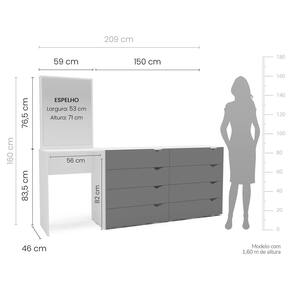 A Cômoda 8 Gavetas Porto da Politorno Móveis é a escolha perfeita para quem precisa de ainda mais espaço sem abrir mão do design elegante e contemporâneo. Com visual clean e acabamento em pintura UV cinza e branco semi fosco, essa peça da Linha Porto traz sofisticação e praticidade ao ambiente, sendo ideal para quartos que exigem organização com estilo. Com 209 cm de largura, 160 cm de altura e 46 cm de profundidade, ela oferece excelente capacidade de armazenamento por meio de 8 gavetas espaçosas, ideais para acomodar roupas, acessórios, documentos e outros itens do dia a dia com total funcionalidade. Fabricada em MDP de alta qualidade, é resistente, durável e de fácil limpeza, tornando-se uma solução completa para manter seu espaço sempre organizado, bonito e harmonioso. Produto Montado: Sim Acabamento da Gaveta: Pintura UV Altura do Espelho: 71 cm Ambiente Principal: Quarto codigo_ean: 7900288188564 Complexidade da Montagem: Média: pode ser montado por mais de uma pessoa e/ou necessite de maior conhecimento para montagem Cor: Cinza/Branco Cor do Produto: Cinza/Branco Cor Interna: Branco Escala de Brilho: Semi-Fosco Escala de Brilho da Gaveta: Semi-Fosco Espessura do Espelho: 3 mm Fita Integrada: Sim Formato do Espelho: Retangular Gaveta com Chave: Não Itens Inclusos: 1 Cômoda, Kit Ferragens, Manual de Montagem e Termo de Garantia Largura do Espelho: 53 cm Linha ou Coleção: Porto Manual de Montagem e Instalação: https://product-hub-prd.madeiramadeira.com.br/172696908/documents/13ea7709-d4d4-414f-af6d-84ff72ff0b61304991262241751569693255.pdf Marca: Politorno Material da Gaveta: MDP Material do Fundo: MDP Material Principal: MDP Necessita Montagem: Sim Origem do Produto: Nacional Peso: 62 kg Peso Máximo por Gaveta: 5 kg Possui Espelho: Sim Possui Nichos: Não Possui Pés: Não Possui Portas: Não Possui Prateleiras: Não Quantidade de Espelho: 01 Quantidade de Gavetas: 08 Gavetas Recomendações de Uso, Manutenção e Limpeza: Utilize um pano macio umedecido com água e sabão neutro, seguido de pano seco. Não utilize produtos químicos ou abrasivos para limpeza, pois estes danificam o revestimento do móvel. Sapatas Niveladoras: Não Sistema de Montagem: Cavilha, Parafuso, Minifix e prego. Suporta Até (kg): 30 kg Tipo de Cômoda: Adulto Tipo de Corrediça da Gaveta: Metálica Telescópica Tipo de Fixação do Espelho: Fita Dupla Face Tipo de Puxador da Gaveta: Embutido Marca: Não Informado