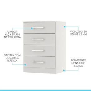 Voc? merece o melhor quando se trata de m?veis para sua casa e a escolha certa para atender todas as suas necessidades. Com um design atual, une versatilidade, conforto e beleza. Com quatro gavetas, voc? ter? muito espa?o para manter tudo organizado e ao alcance das m?os. Produzida com materiais de excelente qualidade, garantindo a sua resist?ncia ao desgaste di?rio e mantendo sua beleza e funcionalidade por muito tempo. O melhor em m?veis no design atual aliando conforto, qualidade e ?timos pre?os, s? na Menu M?veis!