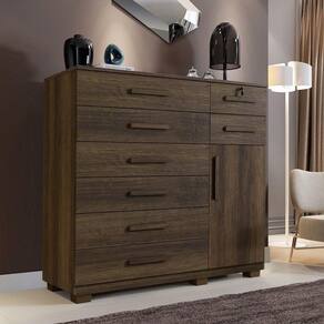 Cômoda Pernambuco 8 Gavetas 1 Porta Com Sapateira - Benetil Imbuia A Comoda Pernambuco complementa seu quarto com charme e sofisticacao, combinando praticidade e beleza. Com oito gavetas espacosas, sendo uma com chave para maior seguranca, oferece organizacao e seguranca para seus itens pessoais. Suas corredicas telescopicas proporcionam suavidade e resistencia no uso diario. Conta ainda com uma porta e prateleira interna, formando uma sapateira bem estruturada. Fabricada em chapa de 15 mm, garante durabilidade e robustez superiores. Com a tecnologia MDP Perfect, alia sustentabilidade e inovacao, proporcionando longa vida util e facil manutencao. A pintura UV de alta resistencia e facil de limpar e ecologicamente correta, feita com madeira de reflorestamento para uma escolha mais sustentavel. Caracteristicas: Material Principal: Mdp Espessura Da Chapa: 15 Mm Escala De Brilho: Semi Brilho Acabamento: Pintura UV Sistema De Montagem: Parafuso, Cavilha E Cantoneiras Metalicas Quantidade de Gavetas: 08 Quantidade de Portas: 01