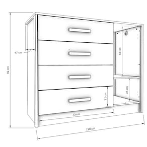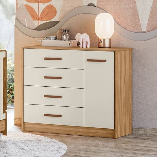 A Cômoda Pérola Peternella conta com amplo espaço interno. Produzida em MDF 12/15 mm bio-sustentável, sua pintura é feita diretamente na madeira tratada, proporcionando assim um acabamento melhor ao móvel. Possui 1 porta e 4 gavetas com corrediças telescópicas. Sua altura é de 91,5 cm, largura de 110 cm e a profundidade 47 cm. É o produto ideal para você que quer aliar qualidade, modernidade e aconchego ao seu dormitório. Acabamento da Gaveta: Pintura UV Acabamento da Porta: Pintura UV Acabamento da Prateleira: Pintura UV Acabamento dos Pés: Pintura Altura dos Pés: 10 cm Ambiente Principal: Quarto Infantil Complexidade da Montagem: Média: pode ser montado por mais de uma pessoa e/ou necessite de maior conhecimento para montagem Cor: marrom/branco off Cor do Produto: Marrom/Branco Off Cor Flex: não Cor Interna: Marrom Escala de Brilho: Fosco Escala de Brilho da Gaveta: Fosco Escala de Brilho da Porta: Fosco Escala de Brilho da Prateleira: Fosco Gaveta com Chave: Não Itens Inclusos: 1 Cômoda, Manual de Montagem, Kit Ferragens Linha ou Coleção: Pérola Manual de Montagem e Instalação: https://cdn2.madeiramadeira.com.br/atributo/peternella-moveis/1997231-892-17170950159969.pdf Material da Gaveta: MDF Material da Porta: MDF Material da Prateleira: MDF Material do Fundo: mdf Material do Puxador da Gaveta: MDF Material do Puxador da Porta: MDF Material dos Pés: MDF Material Principal: MDF Montagem Flex: não Necessita Montagem: Sim Origem do Produto: Nacional Pés Reguláveis: Não Peso: 47,2 kg Peso Máximo por Gaveta: 2,5 kg Peso Máximo por Prateleira: 2 kg Possui Espelho: Não Possui Nichos: Não Possui Pés: Rodapé Possui Portas: Sim Possui Prateleiras: Sim Possui Rodízio: Não Quantidade de Gavetas: 04 Gavetas Quantidade de Prateleiras: 01 Prateleira Recomendações de Uso, Manutenção e Limpeza: 1. Certifique-se de que todas as partes e componentes indicados no manual de montagem estejam perfeitamente identificados e disponíveis antes de iniciar a montagem do móvel; 2. Caso pequenos reparos sejam necessários durante a vida útil do móvel, utilize apenas componentes que estejam indicados neste manual; 3. Depois de terminada a montagem, tenha certeza de que todos os parafusos ou quaisquer outro componentes estejam bem apertados; 4. Não deixe o móvel exposto diretamente a raios solares, água ou excesso de umidade; 5. Não utilize quaisquer produtos derivados de gasolina, querosene, etanol, amoníaco, água sanitária, ácido e/ou equivalentes para limpeza do móvel; 6. Para limpeza utilize um pano liso e macio levemente umedecido. Pode-se usar lustra móveis ou equivalentes; 7. Não friccione objetos cortantes nem dê pancadas contra a superfície ou bordas do móvel; 8. Para evitar o perigo de asfixia, manter a embalagem plástica fora do alcance das crianças; Sapatas Niveladoras: Não Sistema de Montagem: girofix, parafuso e cavilha Suporta Até (kg): 20 kg Tipo de Corrediça da Gaveta: Metálica Telescópica Tipo de Dobradiça/Corrediça da Porta: Metálica Tipo de Porta: Bater Tipo de Puxador da Gaveta: Externo Tipo de Puxador da Porta: Externo