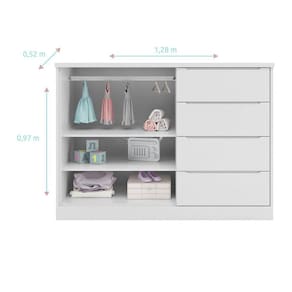 Encanto define essa linha de móveis! Delicada e cheia de detalhes, com certeza é uma ótima opção para o quartinho de seu bebê!. Com amplo espaço você vai deixar todas as roupas e acessórios do bebê organizados com total conforto e praticidade. Acabamento: Pintura UV Acabamento da Gaveta: Pintura UV Acabamento da Porta: Pintura UV Acabamento da Prateleira: Pintura UV Altura: 97 cm Ambiente Principal: Quarto de Bebê Complexidade da Montagem: Média: pode ser montado por mais de uma pessoa e/ou necessite de maior conhecimento para montagem Cr: Branco Cr do Produto: Branco Cr Flex: Não Cr Interna: Branco Escala de Brilho: Semi-Brilho Escala de Brilho da Gaveta: Semi-Brilho Escala de Brilho da Porta: Semi-Brilho Escala de Brilho da Prateleira: Semi-Brilho Estilo: Moderno Gaveta com Chave: Não Itens Inclusos: 1 Cômoda E Manual De Montagem. Largura: 128 cm Manual de Montagem e Instalação: https://cdn2.madeiramadeira.com.br/atributo/phoenix-baby/789455-c-moda-perola.pdf Material da Gaveta: MDF Material da Porta: MDF Material da Prateleira: MDF Material do Fundo: Hdf Pintado Na Cr Em Pintura Uv Material Principal: MDF Montagem Flex: Não Necessita Montagem: Sim Origem do Produto: Nacional Peso: 63,9 kg Peso Máximo por Gaveta: 5 kg Peso Máximo por Prateleira: 5 kg Possui Espelho: Não Possui Gavetas: 04 Possui Nichos: 01 Possui Pés: Não Possui Portas: 02 Possui Prateleiras: 02 Possui Trocador: Não Profundidade: 52 cm Recomendações de Uso, Manutenção e Limpeza: Pano Seco. Sapatas Niveladoras: Não Sistema de Montagem: Parafusos. Suporta Até (kg): 45 kg Tamanho: Tipo de Corrediça da Gaveta: Metálica Telescópica Tipo de Dobradiça/Corrediça da Porta: Metálica Tipo de Porta: Bater Tipo de Puxador da Gaveta: Embutido Tipo de Puxador da Porta: Embutido