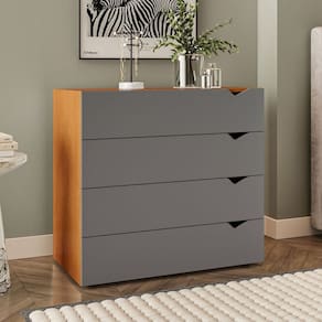 O(a) Cômoda Porto 4 Gavetas Freijó/Cinza - Politorno é produzido em MDF e MDP na escala de brilho Semi-Fosco, e possui um grau de dificuldade de montagem: Médio.