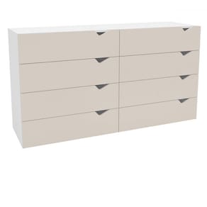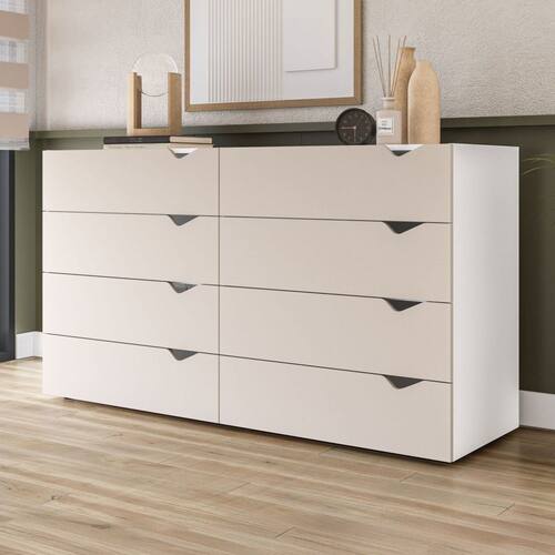 O(a) Cômoda Porto 8 Gavetas Branco/Creme - Politorno é produzido em MDF e MDP na escala de brilho Semi-Fosco, e possui um grau de dificuldade de montagem: Médio.