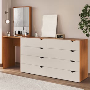 Cômoda Porto 8 Gavetas com Espelho Creme/Freijó - Politorno - Cômoda com espelho