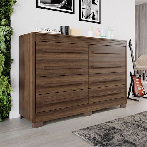 O(a) Cômoda Porto 8 Gavetas Ripado Imbuia - Pnr Móveis é produzido em MDP na escala de brilho Fosco, e possui um grau de dificuldade de montagem: Médio.